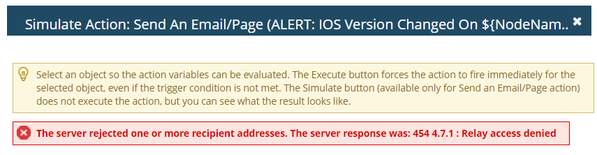Greetings to the community.A change was made to the SMTP server and the modification was made to the email sending of the alerts, but now when I do the test I get this error and