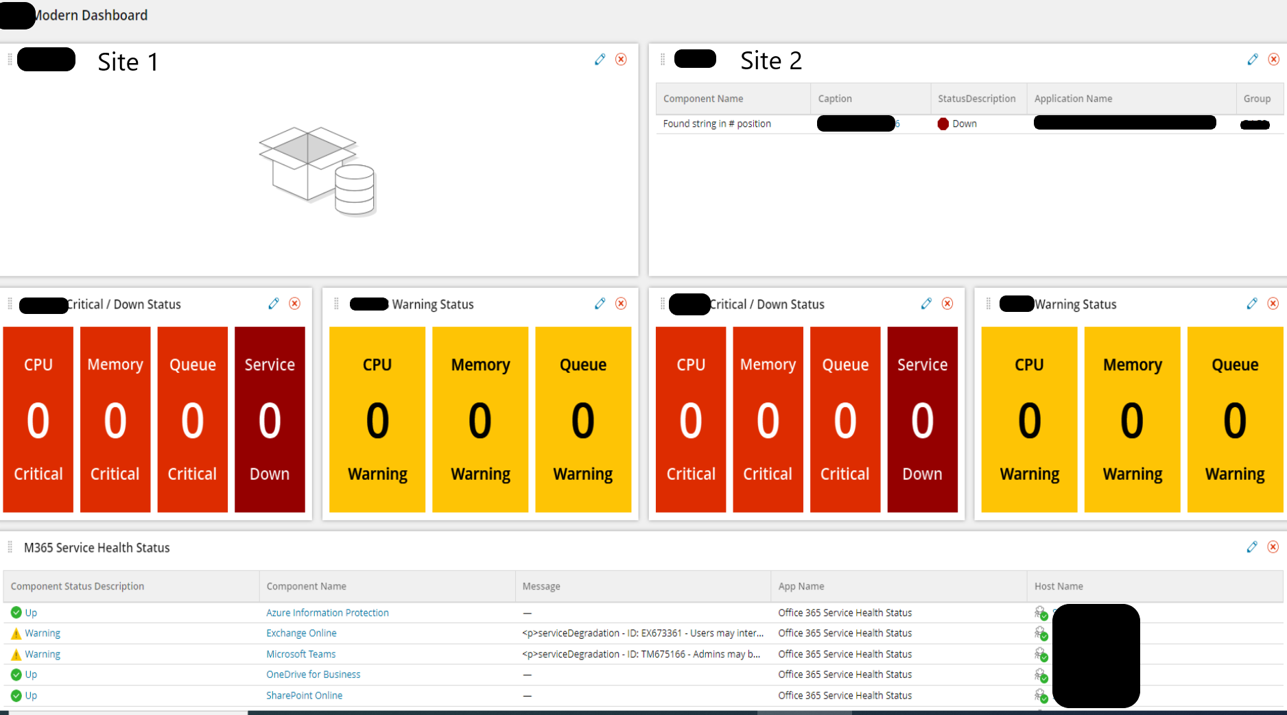 I tried creating an EOC modern Dashboard which will show the critical and warning status of a component on each site that we have.
