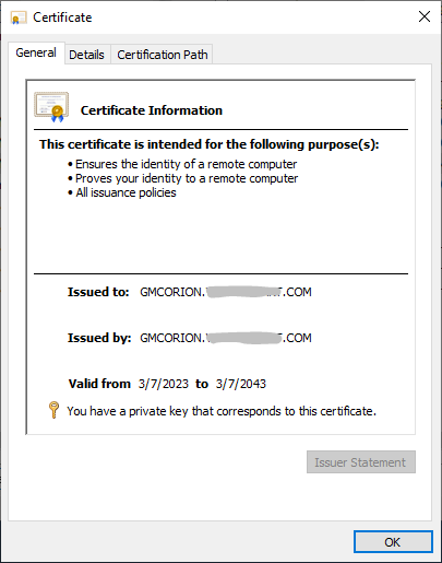 This seems to indicate that Orion could use such an SSL cert as well, without needing a "retail" certificate from an external paid service - as long of course as Orion is accessed internally and not over public Internet with public DNS.