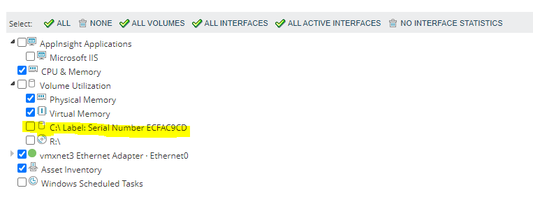 I know I can do a full network discovery on the node, but this is extremely resource heavy and at the end of the discovery it notifies the entire dept of the change. It's a bit unnecessary and as I mentioned too demanding to just check that box. However if I deploy 20+ virtual machines and then use my script to add the new nodes into Solarwinds, I'd really like for that drive to be checked under "List Resources". The other devices (physical & virtual memory) get checked automatically so I'm not sure what's preventing the volume from being checked.