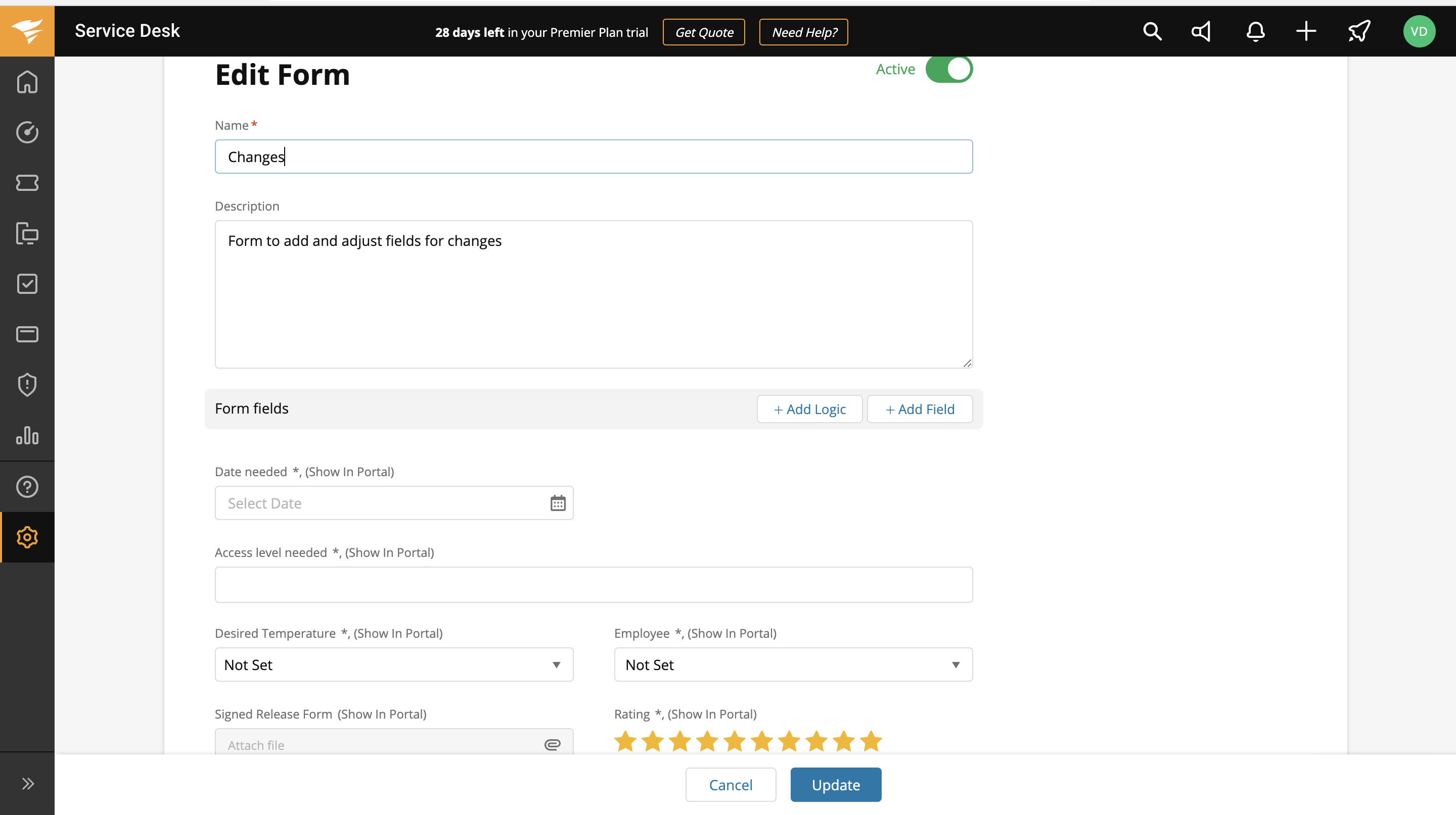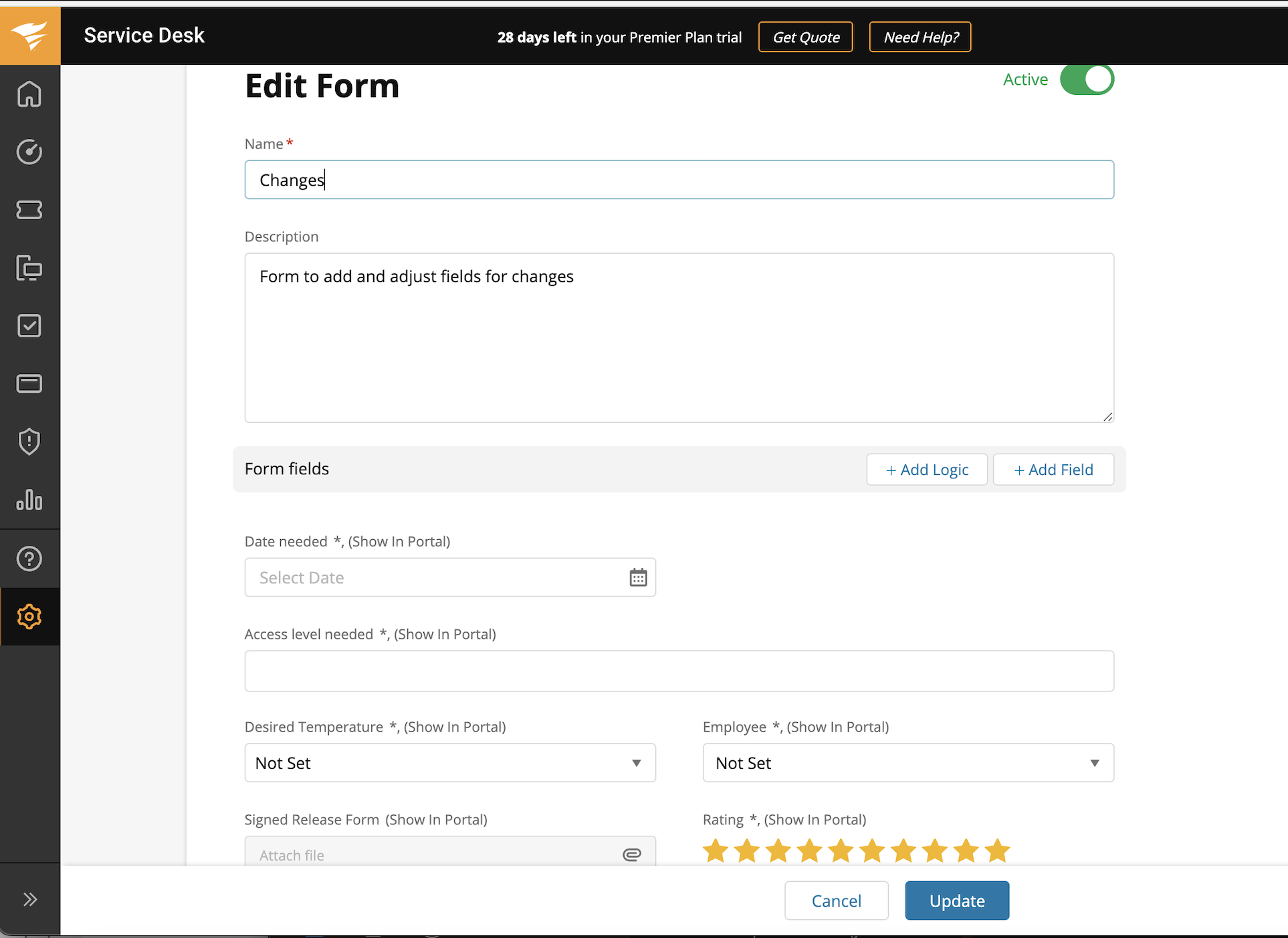 I make all of them as mandatory field and also click on "Show in Portal". But, still they are not showing on Change portal while creating new change.