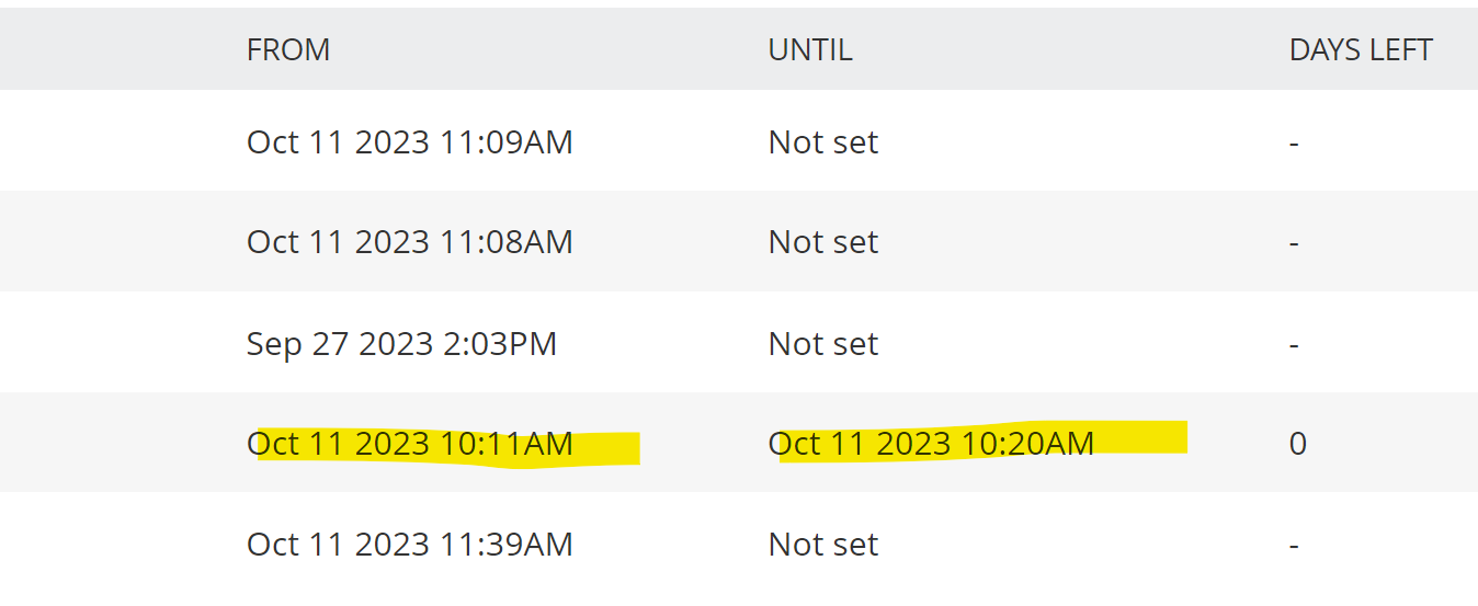 the example below shows the scheduled start/end date of the node but it's still muted and it shows the wrong person.