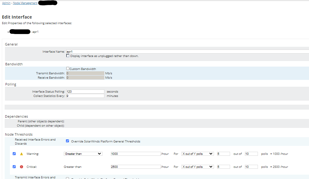 We have many meraki AP node's state that will change to critical when an node's interface state changes to critical. The interface name that's shown in the node's details apr0 and apr1, which I assume is (2.4Ghz and 5.0Ghz networks), only show that the 'interface's downtime' is critical but when I check the Meraki dashboard all is well. Why is that? Where is this status being pulled from? How can I clear this critical state and update the node to show as 'up'?