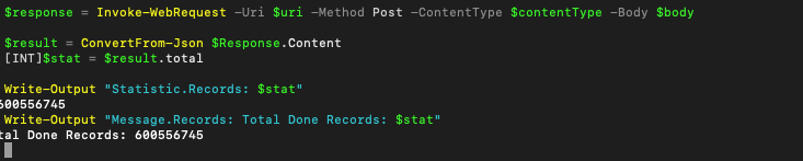PS /Users/> Write-Output "Message.Records: Total Done Records: $stat"