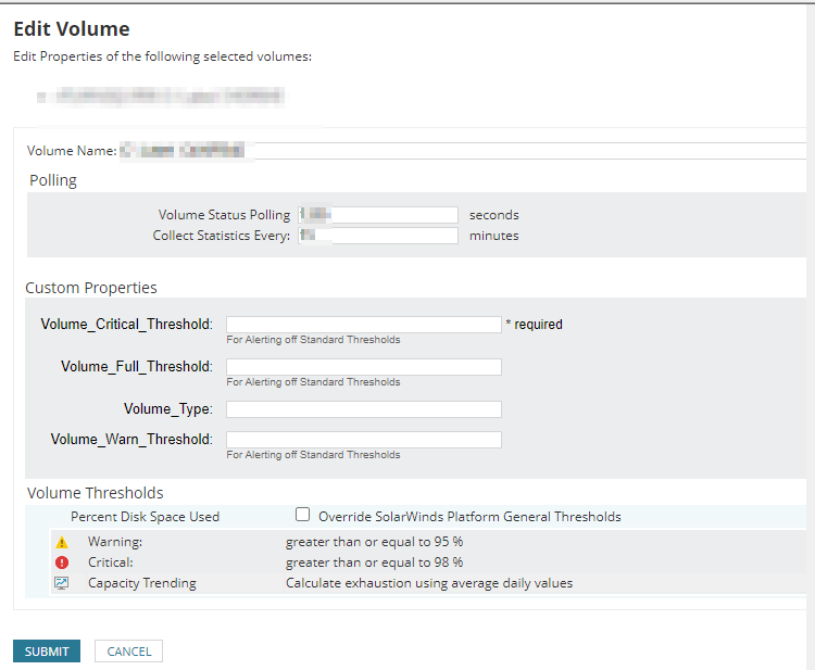 In the screen shot below you can see I can pull Volume > Percent used > Great Than or equal to > Volume > Custom_Property_Name.
