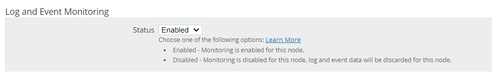 For monitoring logs purposes, I changed the Log & Event Monitoring status to Enabled in the monitoring target, but the log data did not appear.