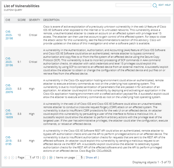 FROM Orion.SecObs.Vulnerabilities.LastMatching.Result