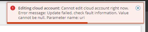 Test connection works fine and there is data coming down from Azure and AWS but when I go to edit the account I get this error.
