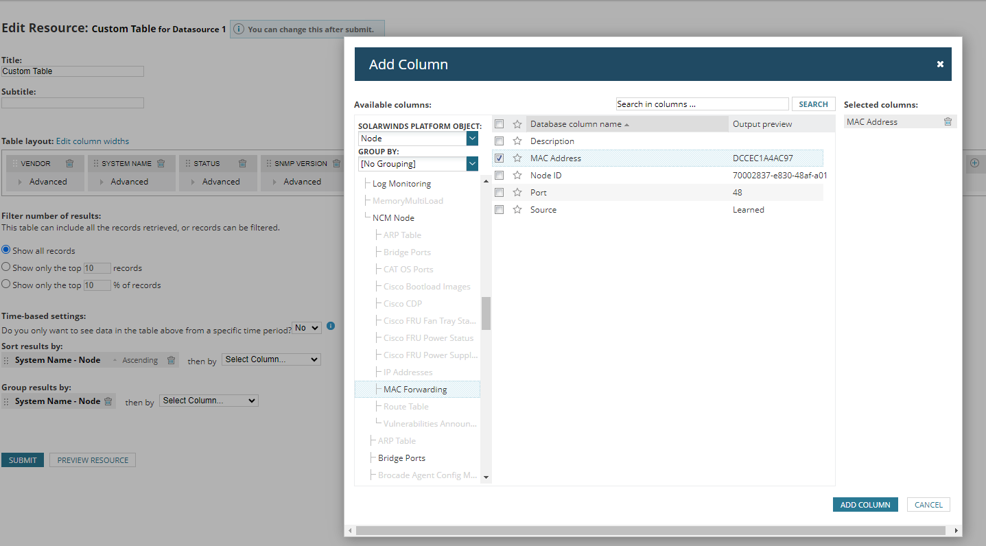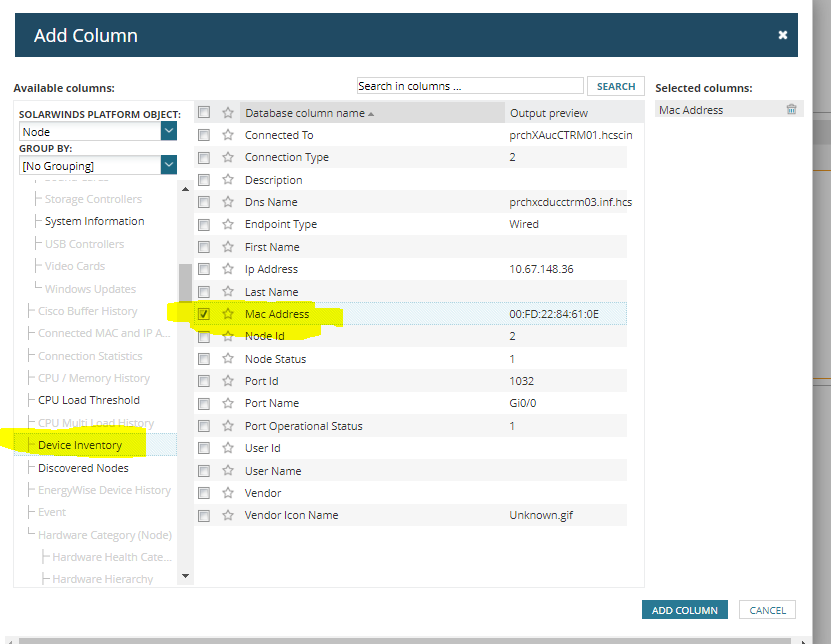 I hope this message finds you well. I'm seeking assistance with a specific issue I've encountered while working on a SolarWinds Custom Report. Within this report, I've configured a column to display the MAC addresses of nodes. However, despite the setup, the MAC address column remains empty, devoid of any data.