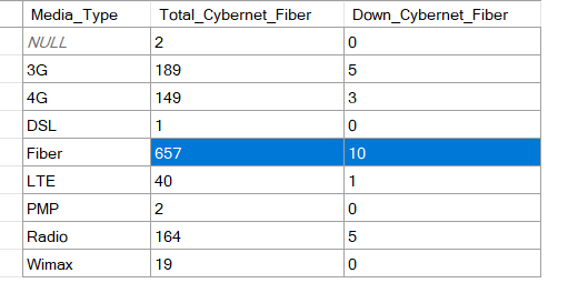 SELECT COUNT(n.DisplayName) as Down_Cybernet_Fiber,