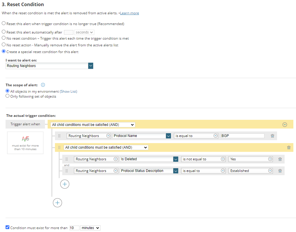 Create an alert when BGP route goes down or is missing in NPM (solarwinds.com)