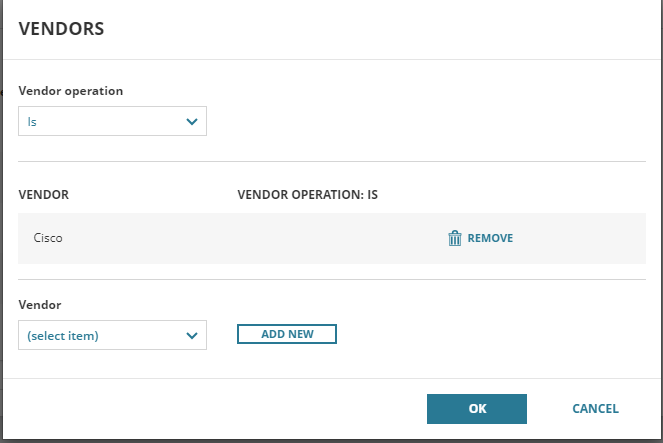 Then all of a sudden I realized that just because it's not in the startup or running configurations doesn't necessarily rule out using Compliance Rules, but it took a bit of setup to prepare for what I wanted to do. The first step being declaring a brand new configuration type, which I decided to call "CiscoSNMPUser", but you can easily choose your own name. Why put Cisco in there? We do use Arista here also, but Arista leaves the SNMP user right in the config, so at least for us, this problem is pretty Cisco-specific. So, under "Admin" and "NCM Settings" I went to "Config Types". Was kind of surprised to see 3 types already there, "Startup" and "Running" which I expected, and a third one called "Device State". But, either way I added my new type here, and once I had it added I went and edited it where I can choose the "Vendor" for the config type. I added "Cisco" as a vendor, like this: