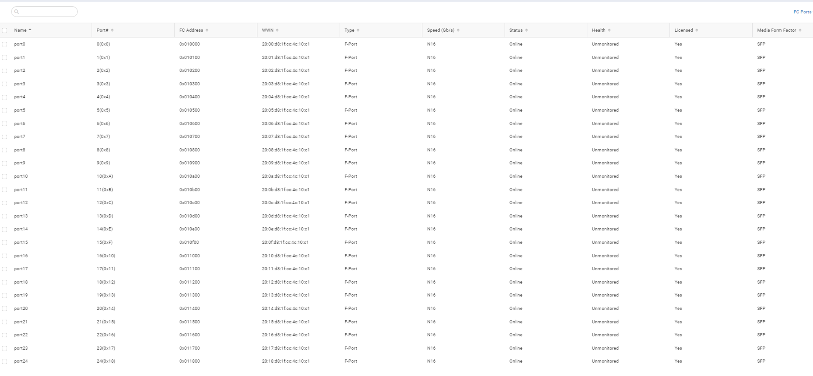We are having Brocade Connectrix DS6620B with firmware version 9.0.1c. We have added it using SNMP, however, all the FC interfaces are not listed in list resouce. It starting after port 25 and the listed all ports are in shutdown or down status. Do any one experience the same.