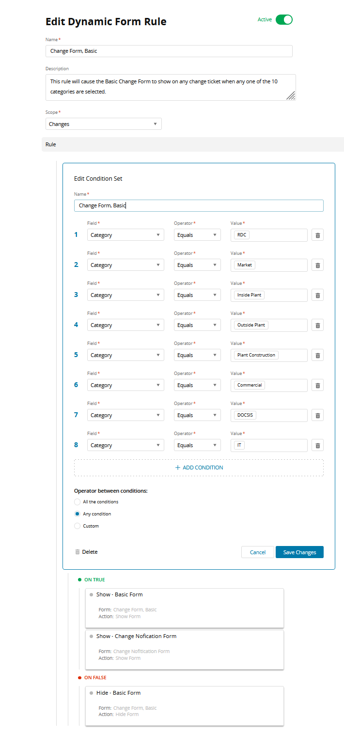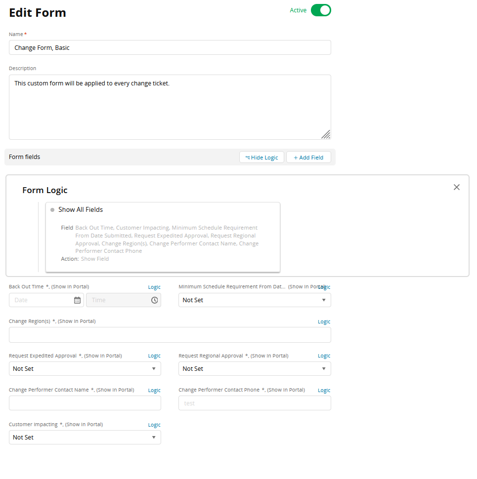 For context, I primarily work with Service Desk for Change Management documentation and ticketing. Despite having created custom fields that are set to be visible in Portal, added them to dynamic forms which are also set to be visible in Portal, and enabled the forms using dynamic rules these fields are not visible in Portal to any of my users. I have my dynamic rules set to display the form whenever one of the eight categories are selected, so it's always going to be pre-selected when the user clicks on the catalog item and makes the request, therefore the customer forms should always be visible. However, the only fields visible are Requester, CC, and the option to Attach Files (as configured elsewhere in SWSD).