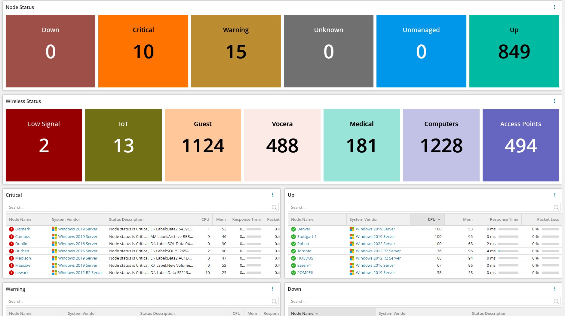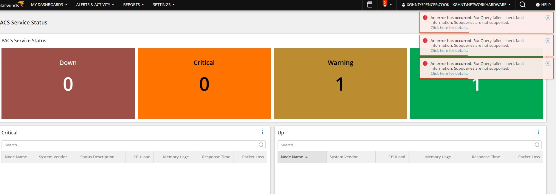 The 4 tables below the status, (critical, up, warning, down) don't work with this query.