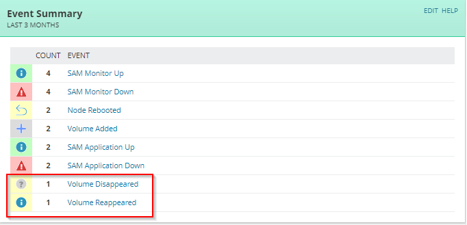 Solarwinds Orion will report that a Volume Disappeared and a Volume Reappeared on the node page. How can I figured out what these are so I can monitor for them?