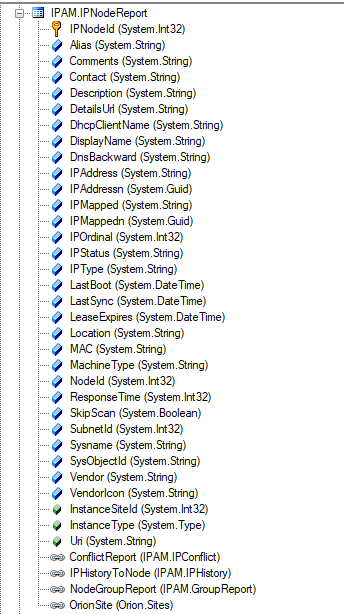 I am looking to create an IPAM report in Solarwinds Orion to report on IP Addresses and include values in a Custom Property. I have been able to find a report that is similar but I am not able to add the custom property to the table as it does not show up. The Custom Property is called DeviceType and it is an Entity Type of IP nodes.