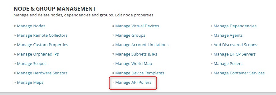 I have a Solarwinds dev environment. I am not seeing the manage API poller options in the Solarwinds that i have installed.