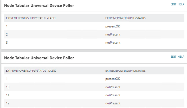 The MIBs for our Extreme switches have been added to the MIB database and installed in Solarwinds. What I want to do is create a widget displaying a table of switch names and power supply status (OID 1.3.6.1.4.1.1916.1.1.1.27.1.2 - extremePowerSupplyStatus).
