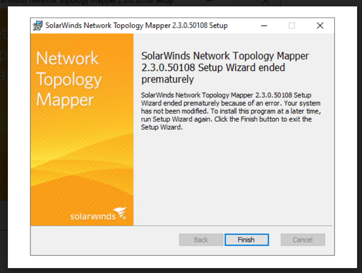 Good morning to the communityI am doing the installation ofNetwork Topology Mapper 2.3.0.50108 and it gives me the following error.