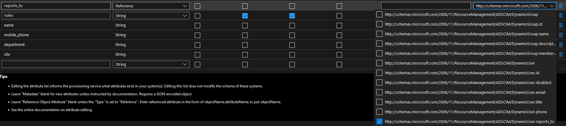 When attempting to provision users from Entra ID, string fields work as expected and Entra values appear in SWSD but the manager field never maps to "reports_to."