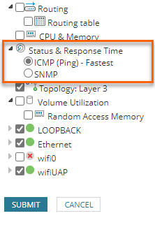 To the best of my knowledge, there are two ways to determine the status of a node. Via ICMP, the default, or you can change it to use the SNMP connectivity for status. This is done in "List Resources" for a node at the top where it says "Status & Response Time". ICMP is usually selected, but you can change it to SNMP.