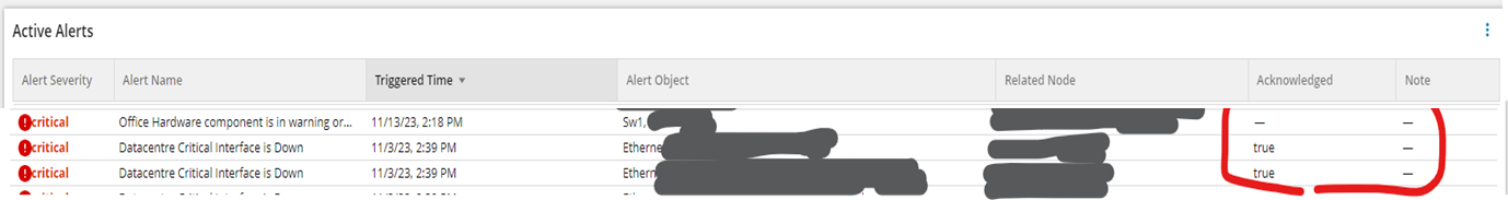 I'd like to show Alerts with Acknowledged Status and Acknowledged Note in Dashboard but having no luck.
