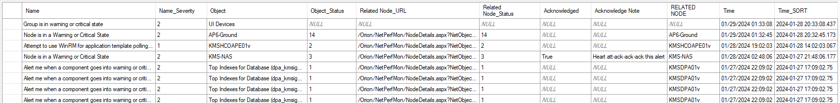 , [SA].AlertActive.Acknowledged AS [Acknowledged]