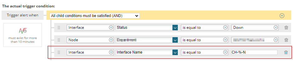 The aim is to alert only if the Interface Name has any combination of CH-Number-Number-N e.g. it could be CH-1-2-N or CH-3-6-N etc. The part that changes is that in between the CH-%-N.
