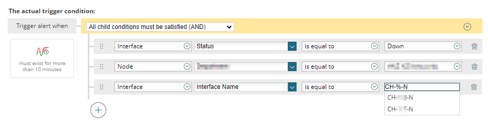 Using the wildcard it lists the interface names of interest in the drop-down (screenshot 2 below) so I'm assuming yes, but as we're unable to test this alert unless the issue actually occurs, hoping to confirm.