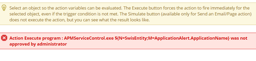 Is there something that needs to be enabled in the admin level on the server, if yes, i have full control of it. I have followed these instructions as well ; www.solarwinds.com/.../core-approve-execute-alert-action.htm