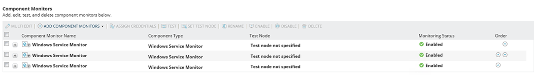 I have also tried making a component for each of these SQL services and an alert for each of these 2 SQL services and they work normally. However, I am dealing with over 2 dozen services to monitor.