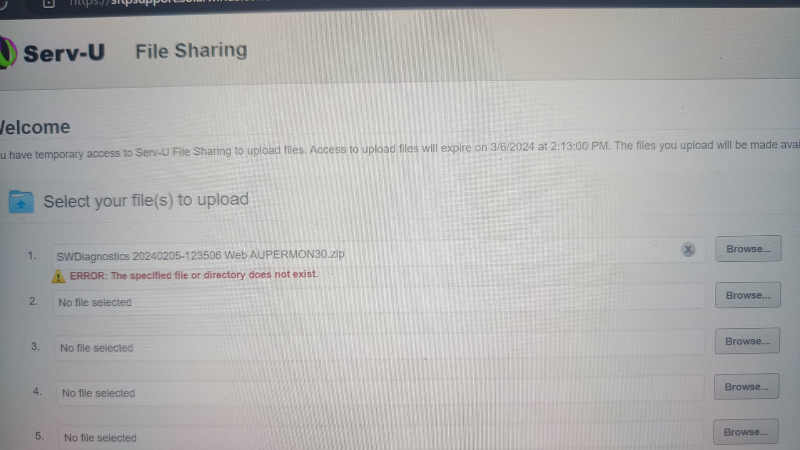 I am unable to upload any type of diagnostic files on the SFTP link. i keep getting the error that says specified file or directory doesn't exist.
