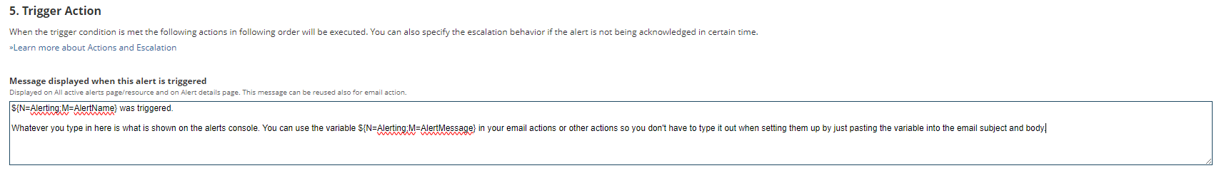 Then came the talks of redoing SolarWinds in our environment. We stumbled on some posts that referenced using custom properties to populate the To field in the email side of things. After some testing, we validated that it was pretty reliable. The only bug we ran into is if someone copies/pastes an email and it brings across hidden ascii characters. So we moved forward with using that approach and various custom properties to set the alert actions for Up/Down, CPU, Memory, Volumes, Components, Applications, etc... This allowed us to re-use the same alert action across an object for multiple alerts.
