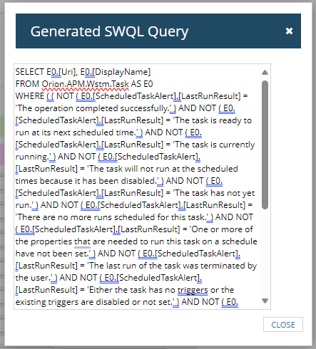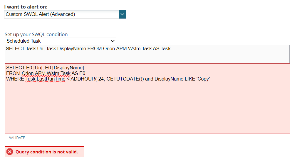 I'd like to create a query that allows Solarwinds to alert when a scheduled task hasn't run for the last 24 hours.
