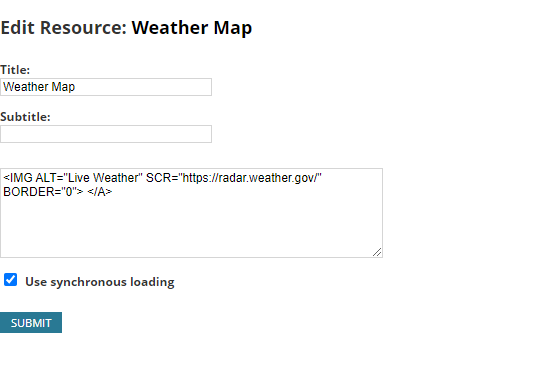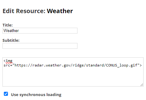 I am attempting to add a live weather map to our Summary Dashboard. What I am trying and the only thing I have found thus far is to add custom HTML widget and add the link to the map (radar.weather.gov). The issue is, I am not HTML coder and I am not sure how to get this to work. Any guidance on this would be appreciated.
