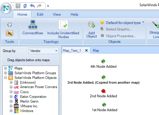 The problem however is that any nodes that are added to our existing map show up with a grey unknown status, as shown below.