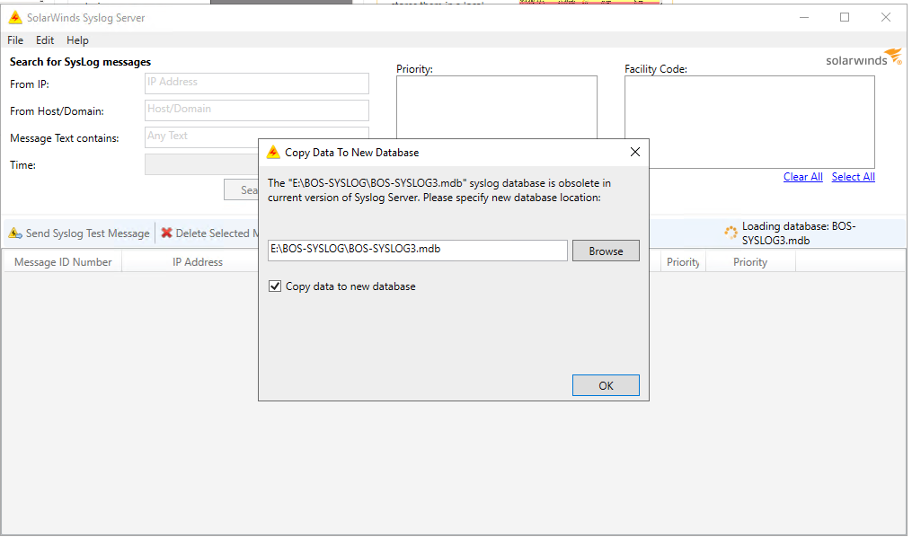 1. Everytime I launch the syslog server, it gives me the below message and I have to create a new local database.
