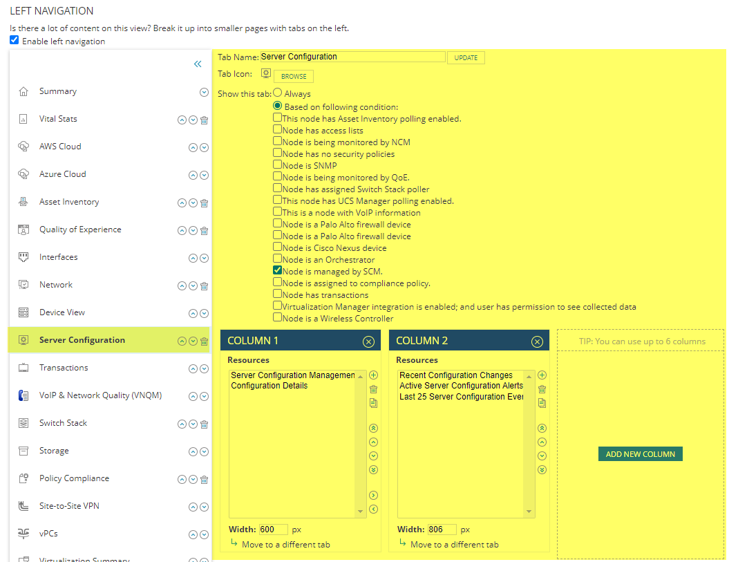 We have a custom Node Details view. Since our migration to HCO we have Server Configuration.