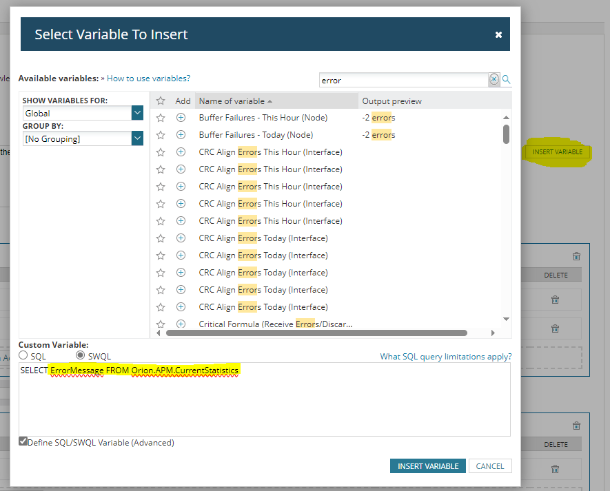 I have a new alert for a windows PowerShell script alert from a log file. Does anyone know how/if I can pipe the output of the alert output in a variable into the alert (email etc)?