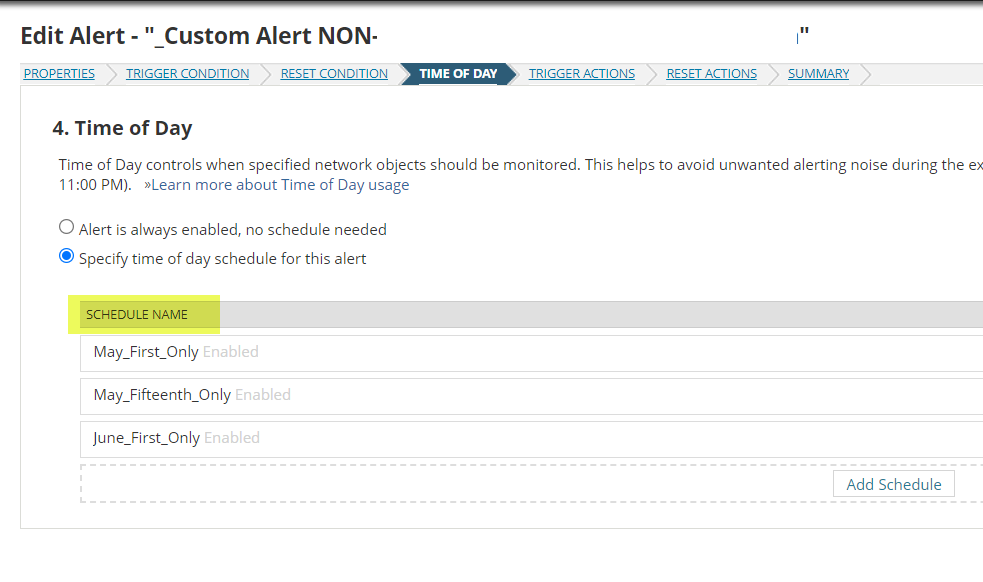 I would like to retrieve the details of the Alert schedules assigned to alerts.