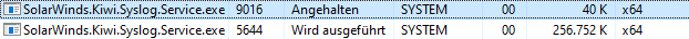 In the Taskmanager i suddenly can see 2 Instances of Solarwinds.Kiwi.Syslog.Service: