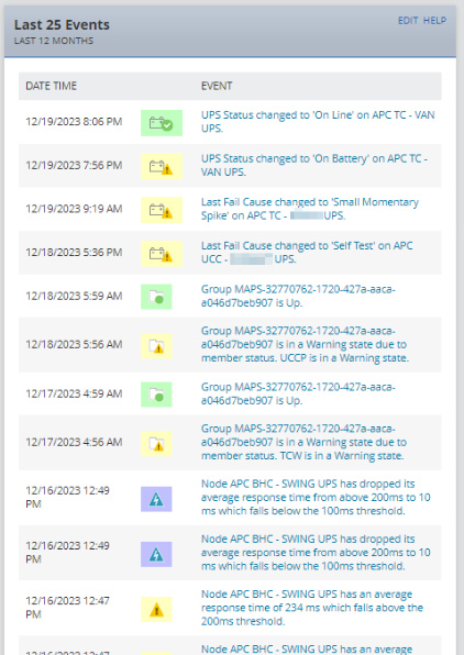 this is a bit of a beginner question, but I'm building a dashboard for a group of objects (UPS's), and i want to show the last X events and audit events (separate widgets) for devices in these groups.