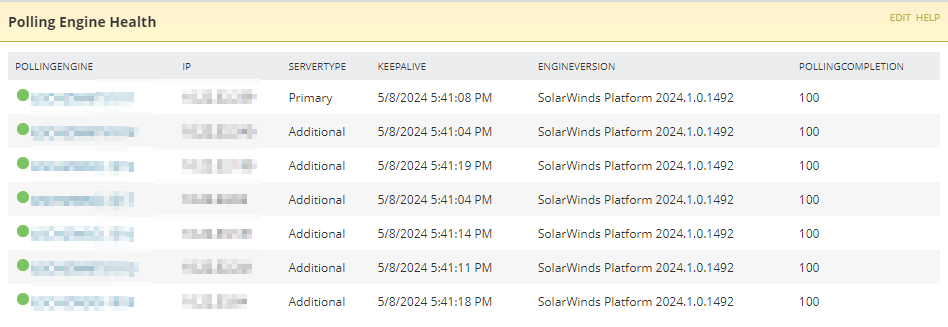 (+) A simple SWQL query to gather the Engines Table information from EOC for all underlying sites? - Forum - Enterprise Operations Console (EOC) - THWACK (solarwinds.com)(+) Orion Polling Engine Report - Reports - The Orion Platform - THWACK (solarwinds.com)