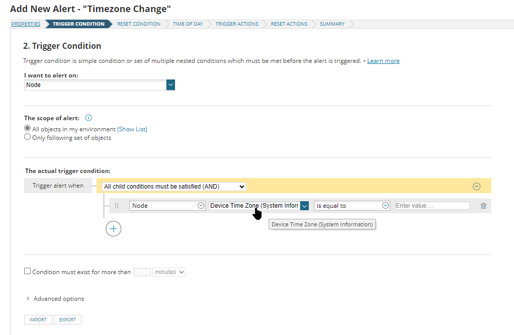 I have a new request regarding changing the time zone alert. If anyone changes the time zone on the server, SolarWinds will provide the alert. Could someone please help me with enabling monitoring for time zone changes on a particular server, and how to create an alert for this? It's very urgent. Please assist me with this.