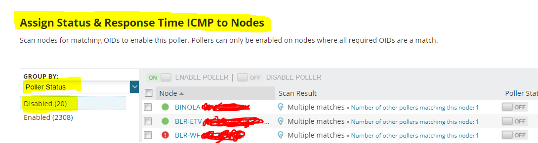 Please see the below snapshot, i have some doubt in it. It' regarding the poller of ICMP nodes. My doubt on disable (20) and i have few questions on it as mentioned below.