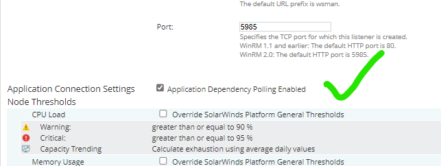 I'm noticed something unusual a while back and I am stumped. I made a nice map of our SolarWinds platform including the MPE, 3 APE and our SW SQL Server. The simple map was only the five nodes and the SAM templates for MPE and APE. When I first created it I enabled Application Dependency Polling and all my map elements were connected with throughput and latency metrics. I was happy. Fast forward several months and now only two of the elements are connected. When I check the node settings to see if the Application Dependency Polling is enabled I find that the setting is missing on all the nodes but one. Does anyone know why they are missing and how to bring them back?