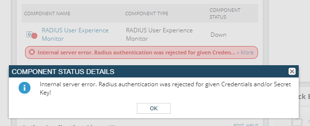 Hi team/community, please help with the below error. "Internal server error. Radius authentication was rejected for given Credentials and/or Secret Key!" "Application status is Down" How do I rectify it? Best regards,
