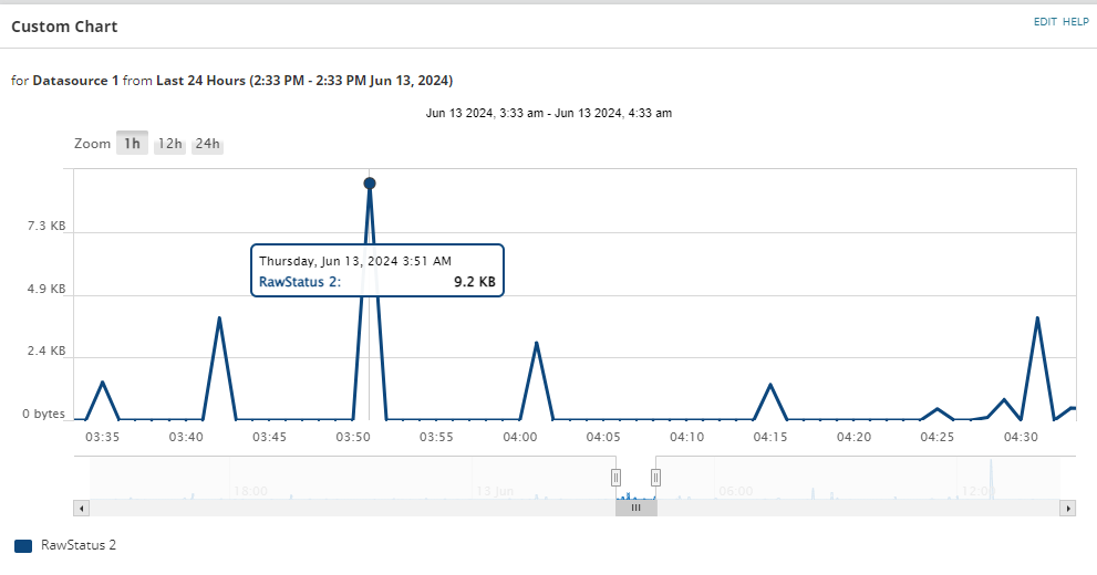 The SWQL code is as follows, I'm plotting the RawStatus value as this contains the Delta between the Current polled value and the Previous.