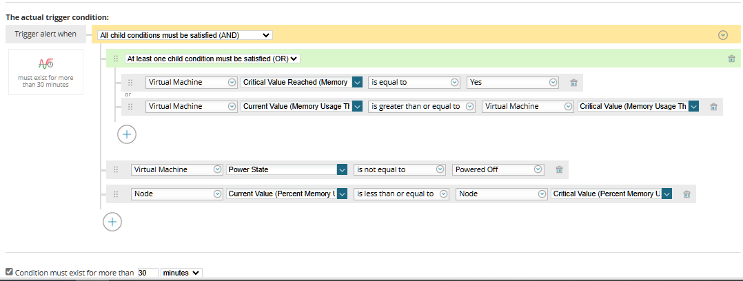 We had an issue in the past where critical values were getting reached but the critical value reached flag did not trip, hence the or block. We also like to not alert on resource utilization if a system is powered off/down.